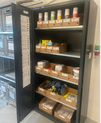 Når Roland eller hans kolleger har brug for en artikel, scanner de kassens stregkode med Solars app. På den måde ved de, hvilke artikler der bruges, samtidig med at de har styr på, hvad der er på lager. Så snart de ser, at artiklerne begynder at slippe op i en af kasserne, bestiller de bare flere.